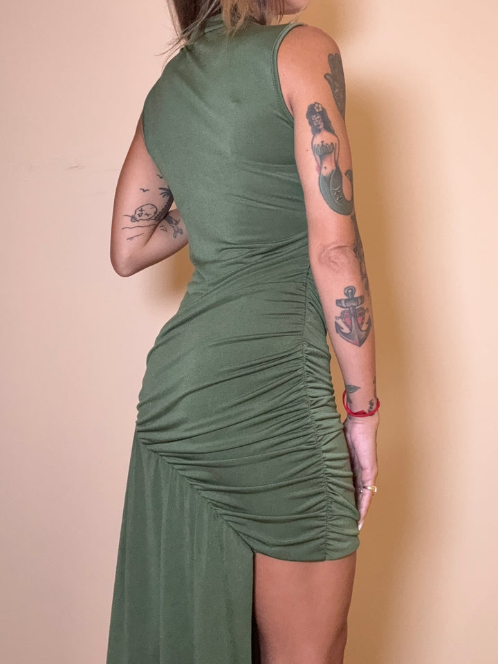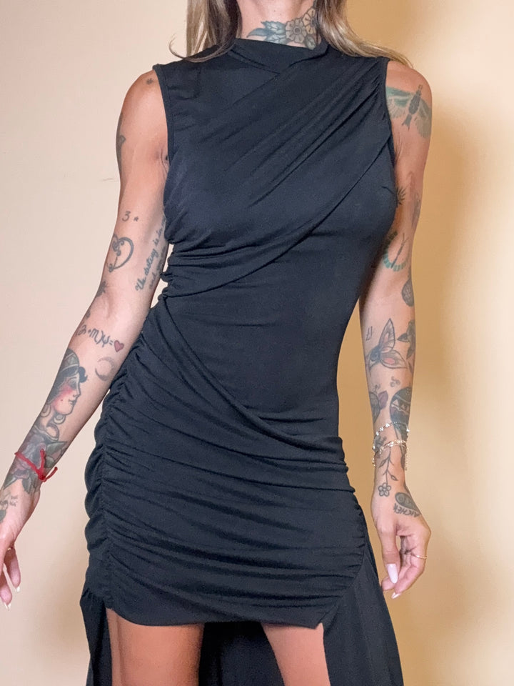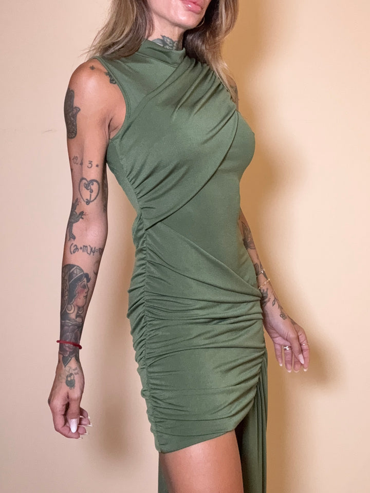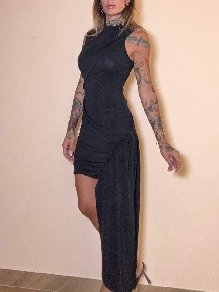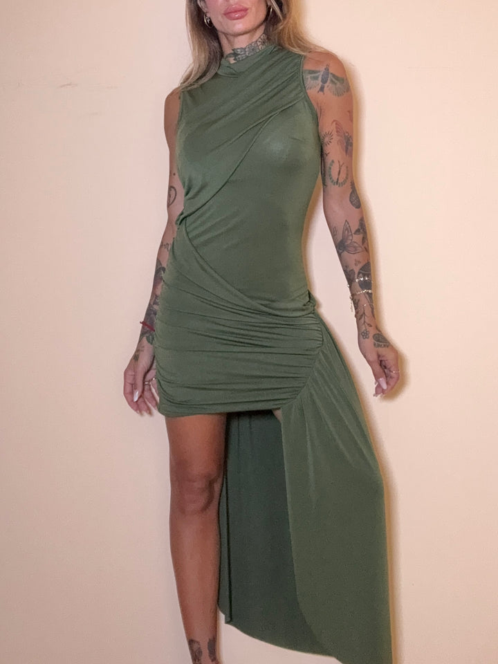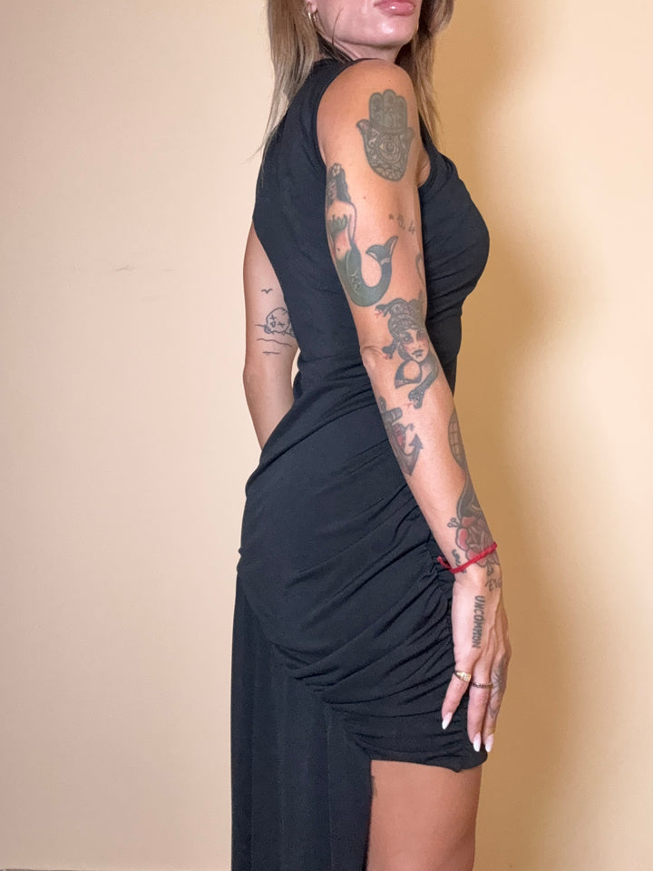 abito in tessuto elastico con drappeggi, asimmetrico. taglia unica