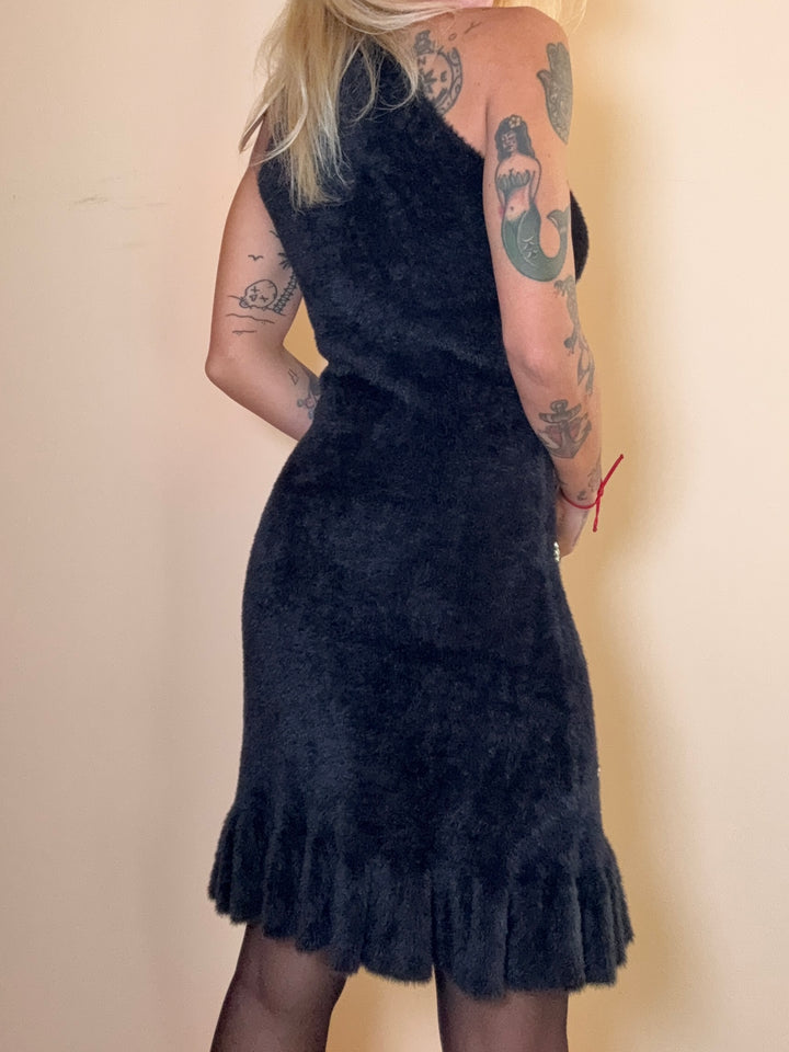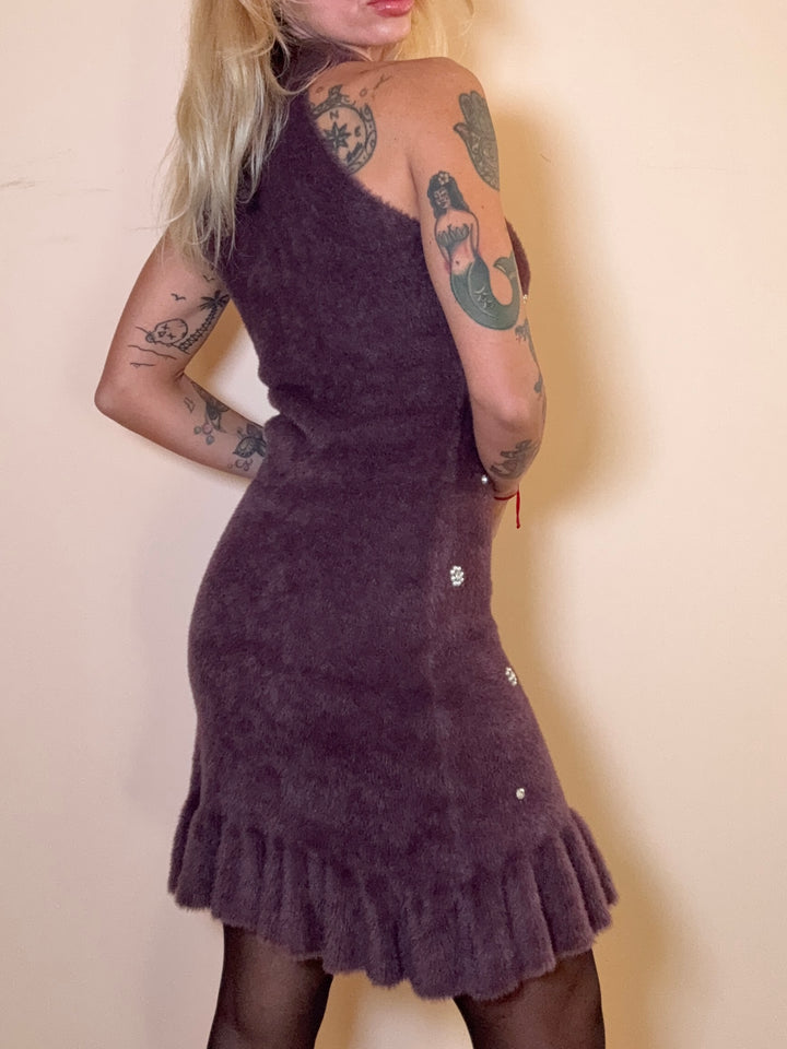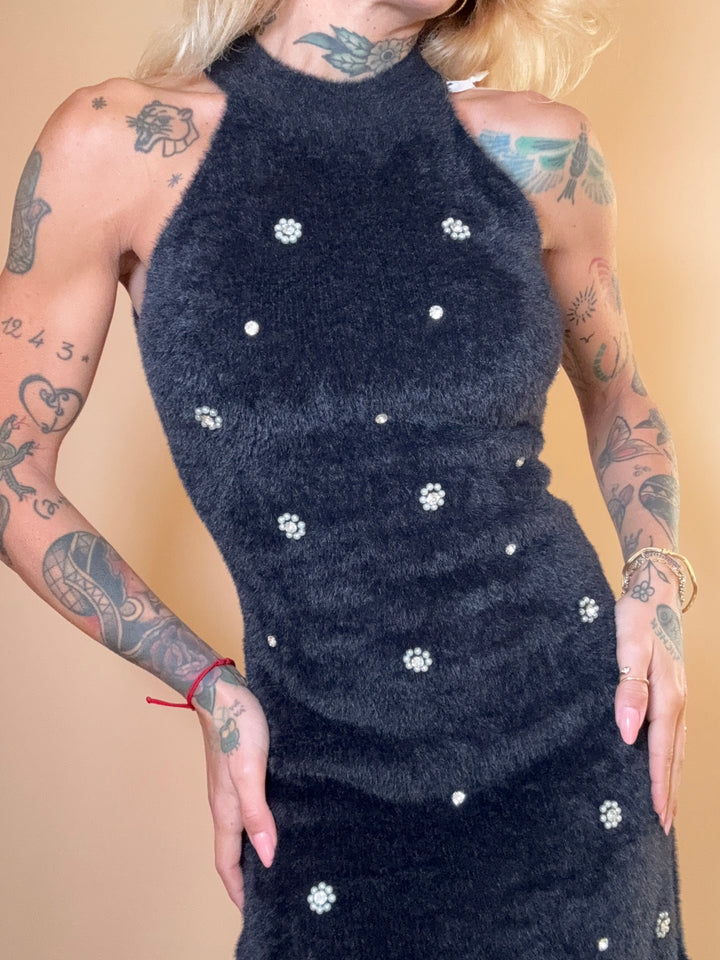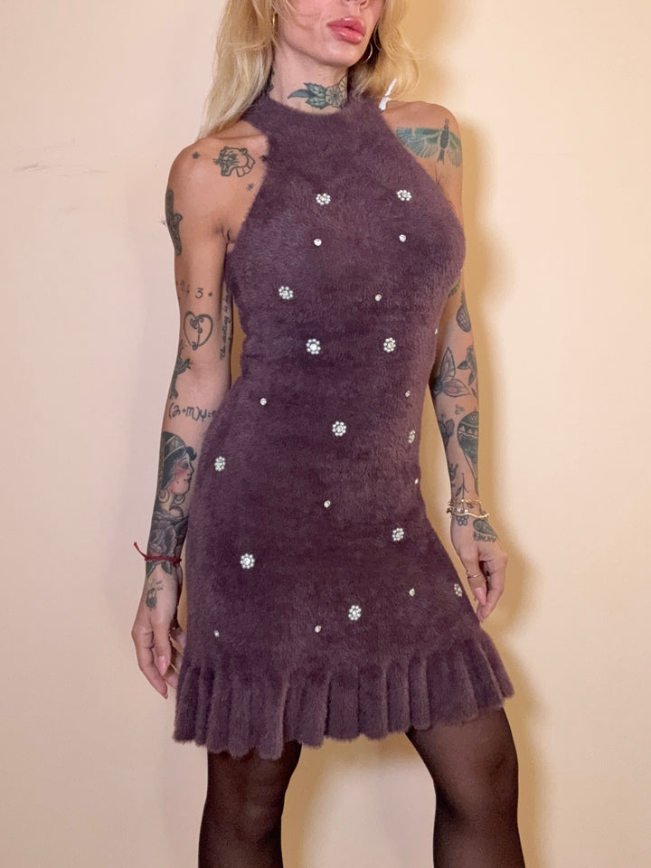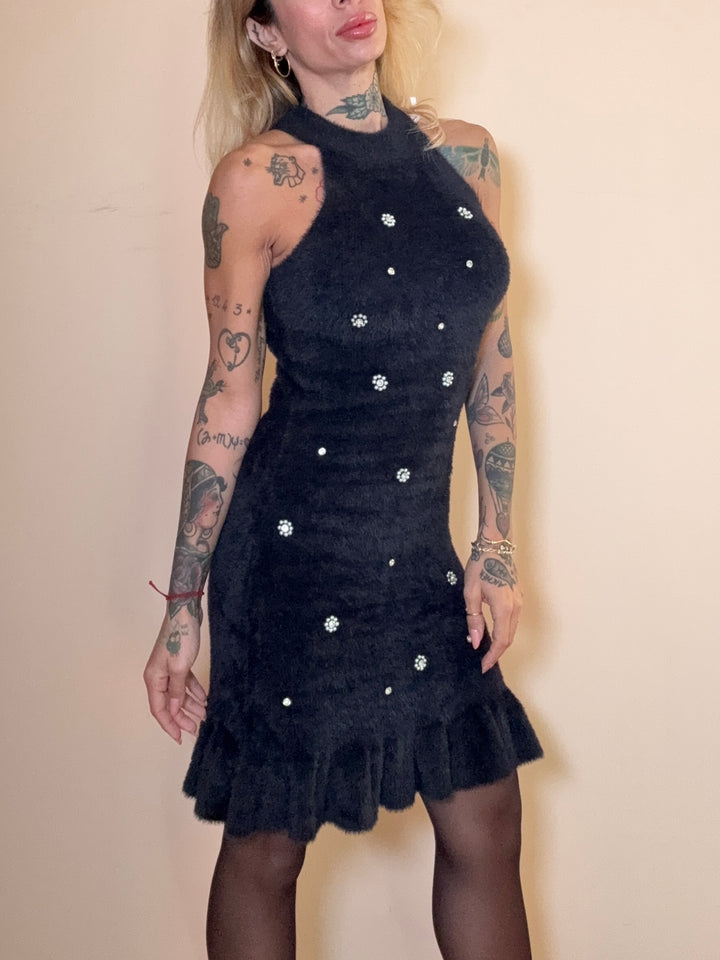 abito in maglia morbida elastica con applicazioni sulla parte davanti. in taglia unica