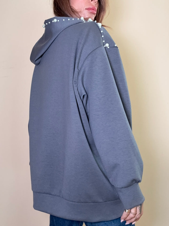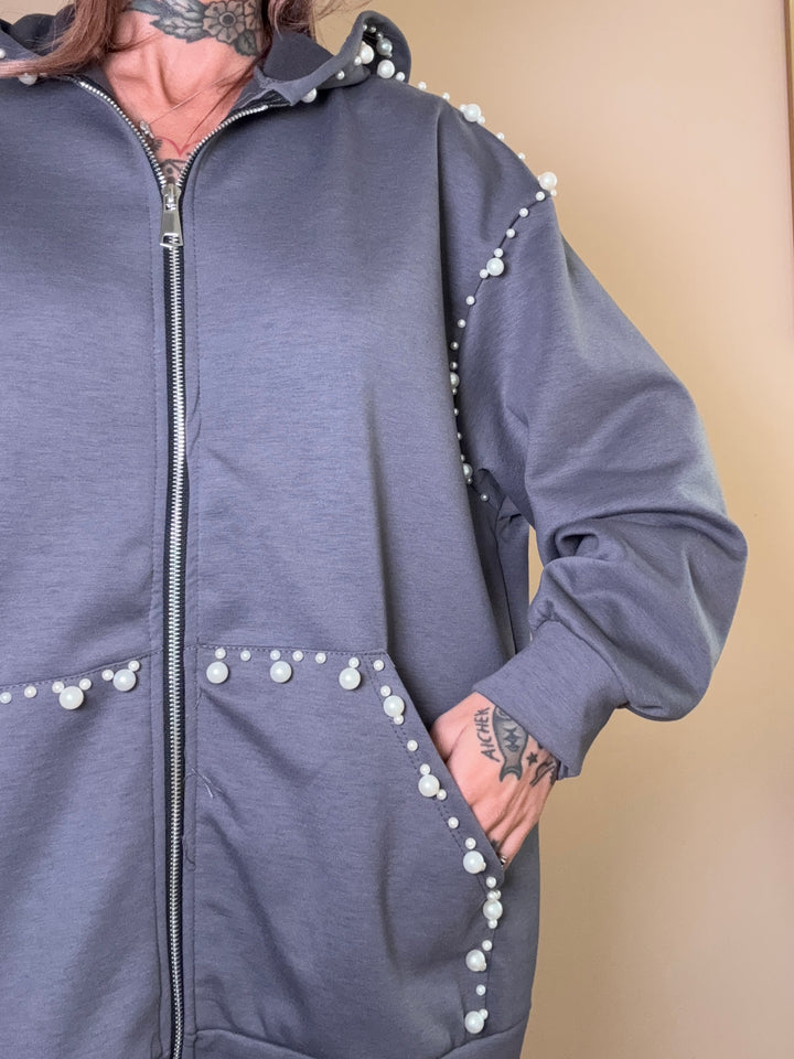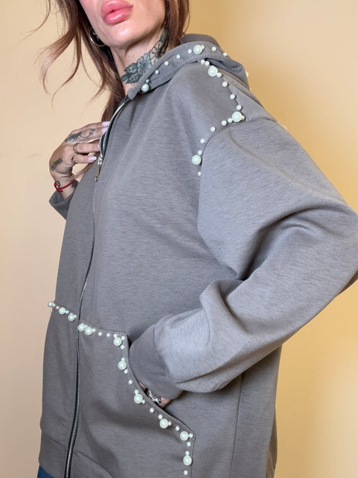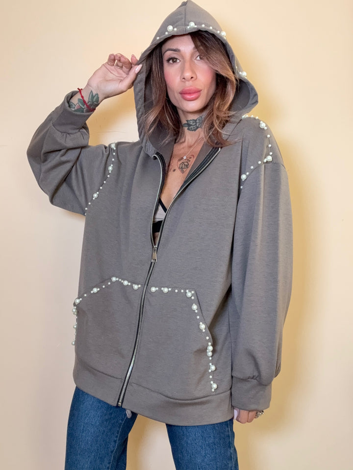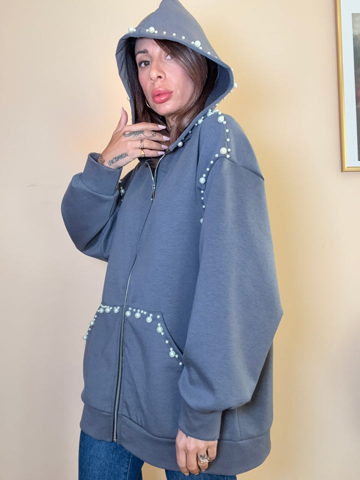 felpa imbottita over con zip e dettaglio perle. taglia unica