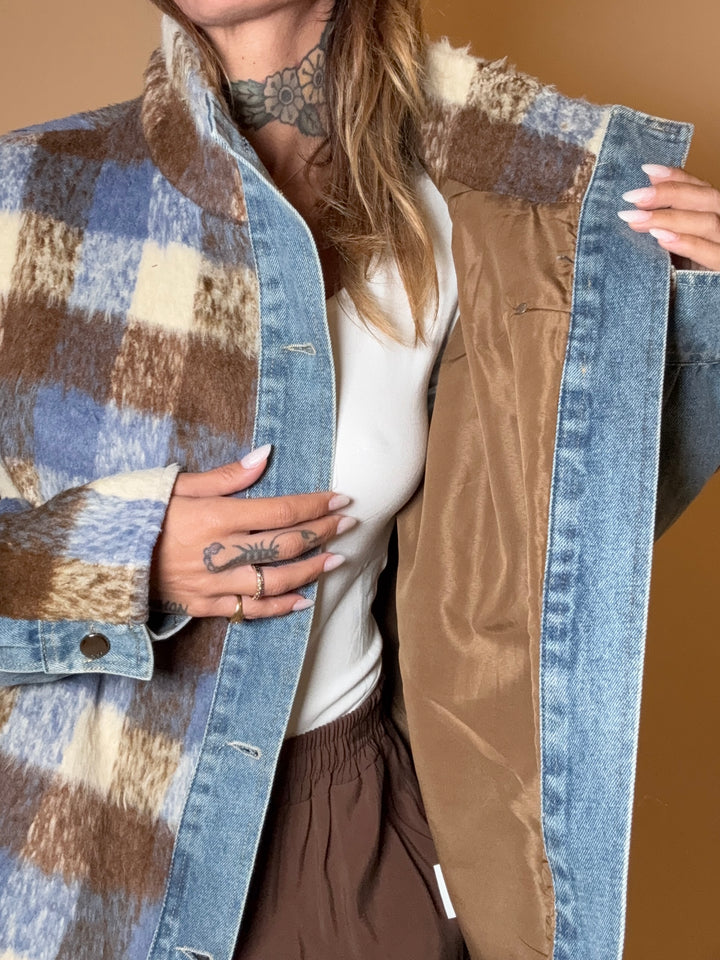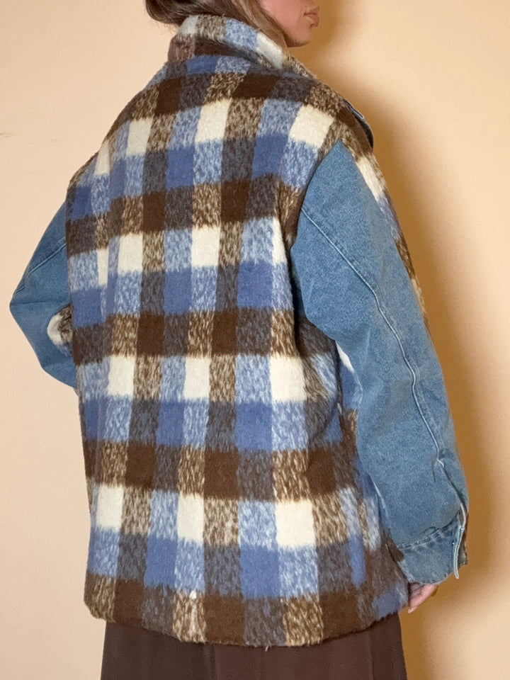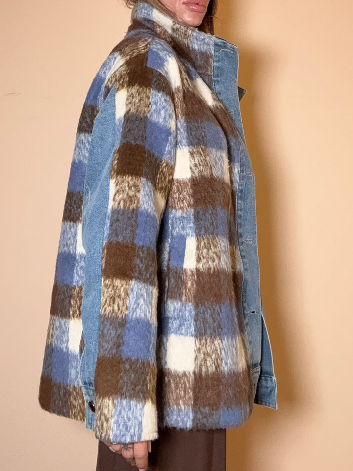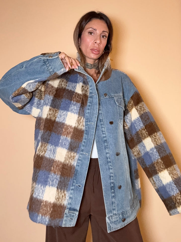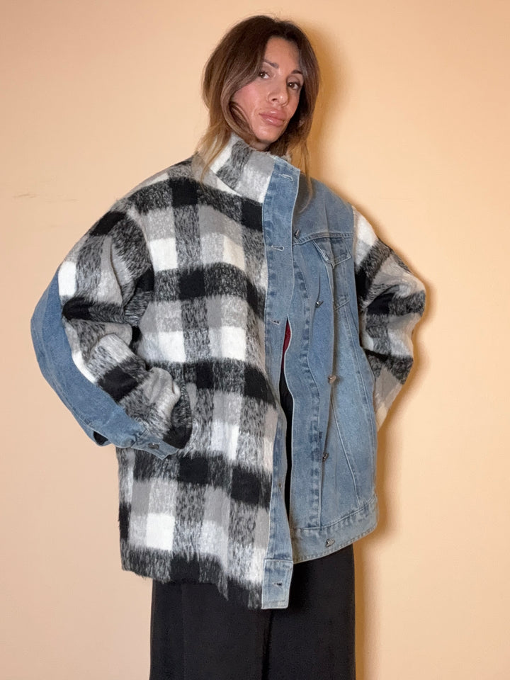 giubbotto modello over in denim e tessuto lana. taglia unica