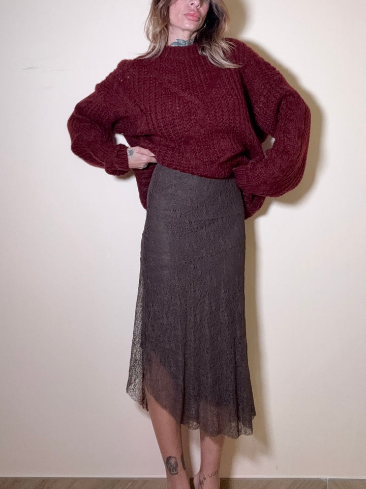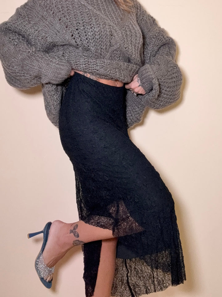 gonna elastica asimmetrica in pizzo foderata. in taglia unica