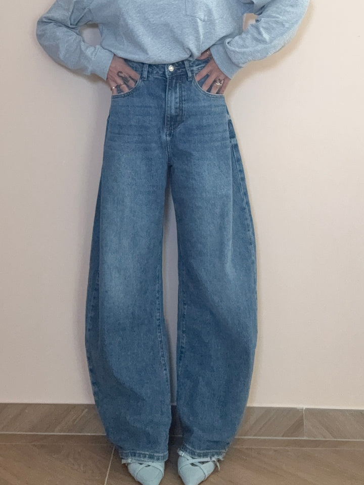 jeans modello balloon, vita alta. tela denim elastica. (in foto indossata la tg XS)