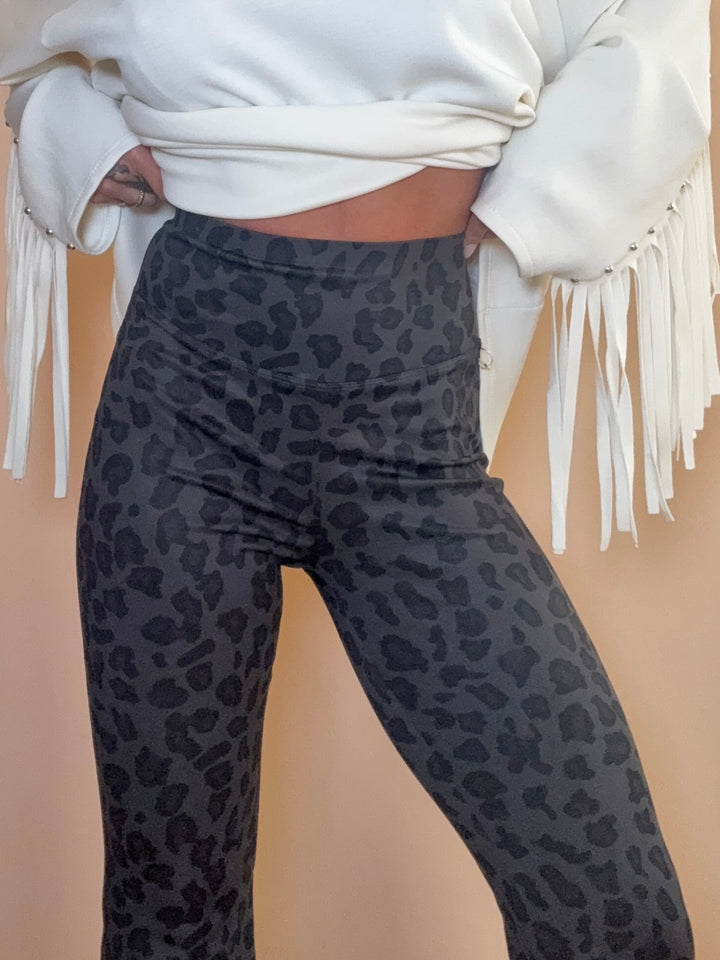 legging in lycra morbida stampata, vita alta a zampa. taglie s/M -l/Xl (in foto indossata la tg S/M)