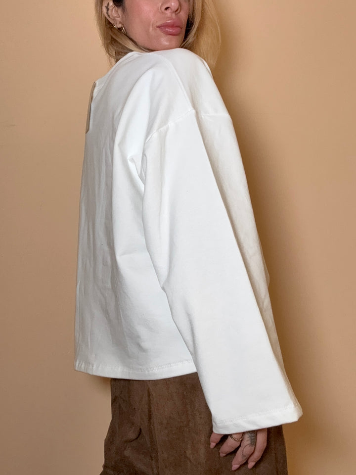 maglia ampia in 100% cotone felpata all'interno. in taglia unica