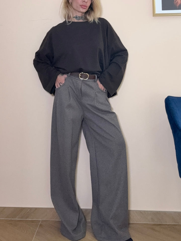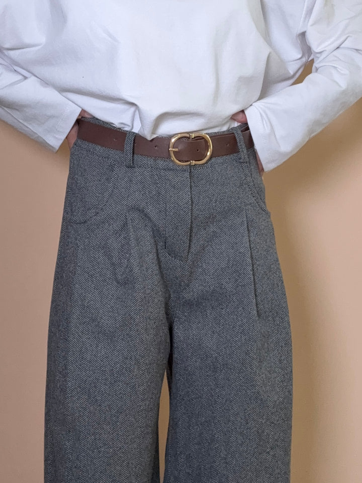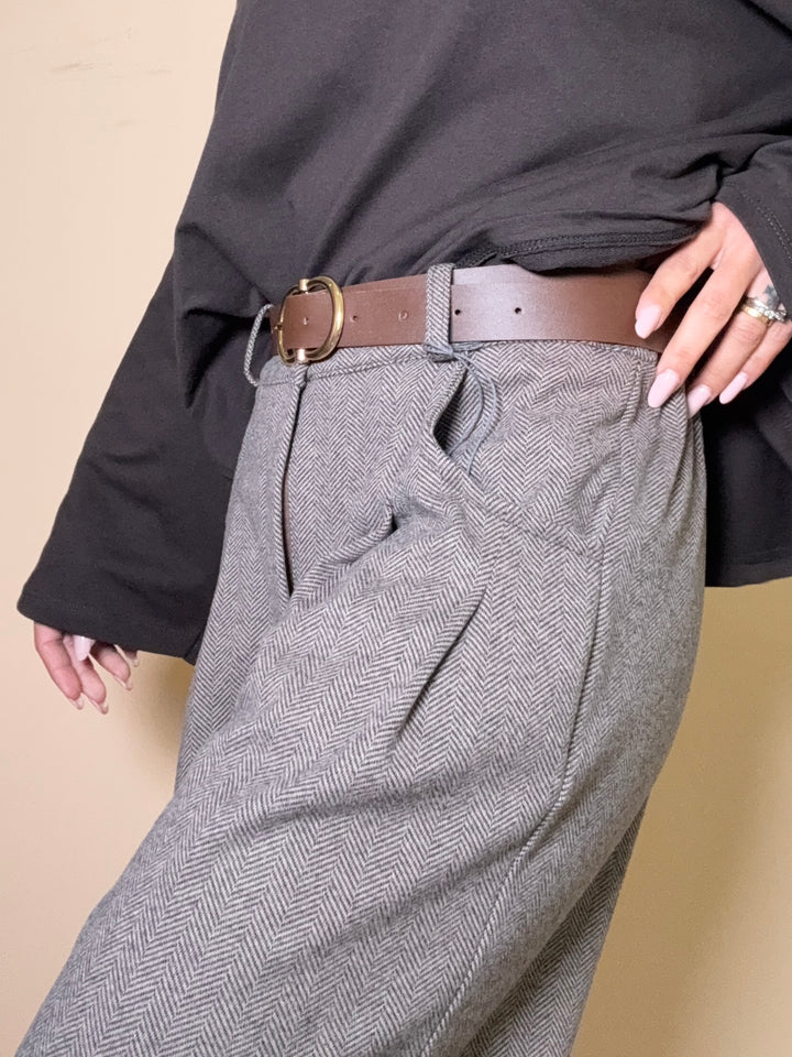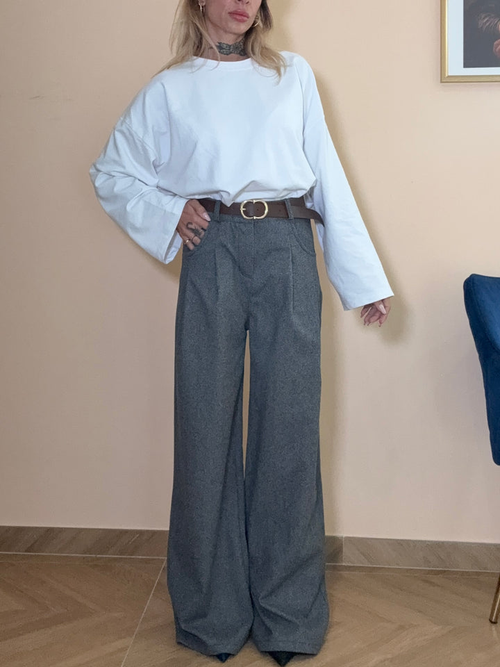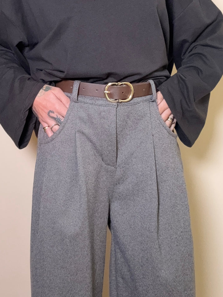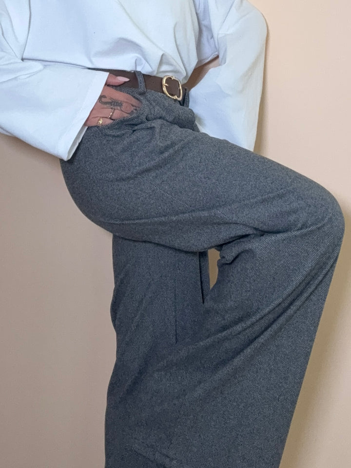 pantalone in tessuto spigato con pence , palazzo con elastico dietro e cintura compresa. taglia unica