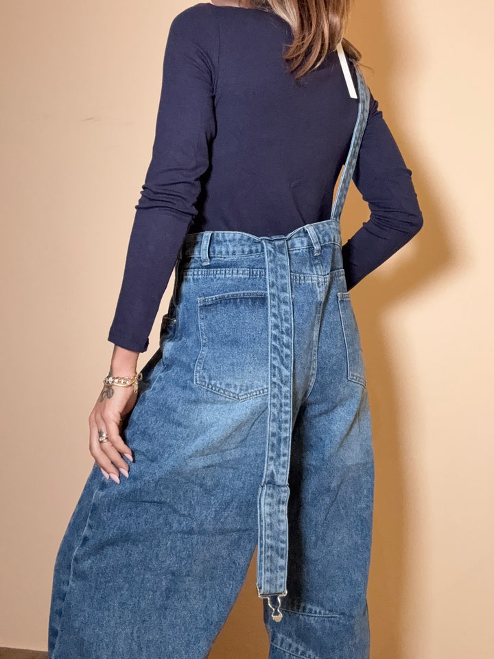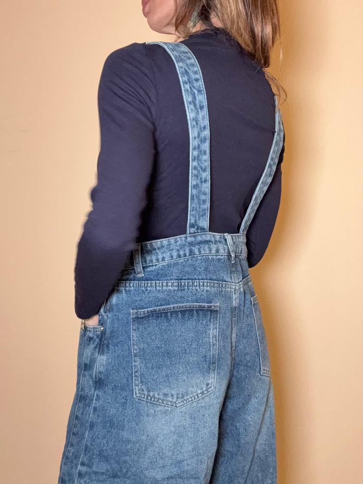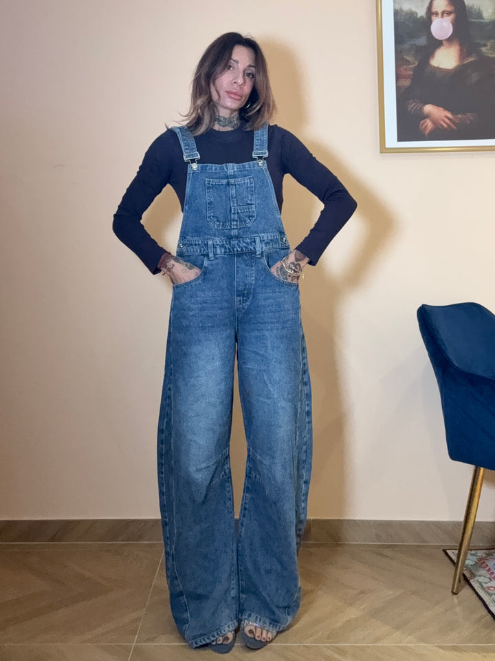 salopette modello balloon in tela denim elastica. (taglia indossata in foto XS)