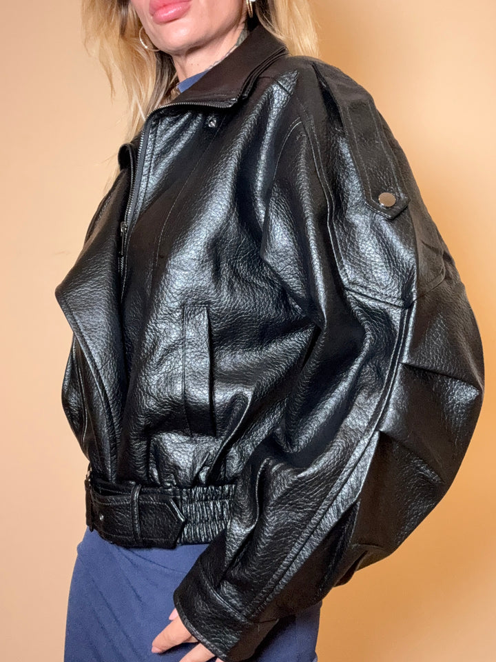 giubbotto in ecopelle morbidissima modello ampio vintage, cintura ed elastico sotto. (in foto indossata la tg S/M)