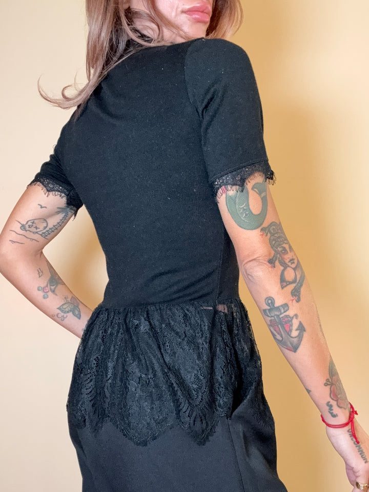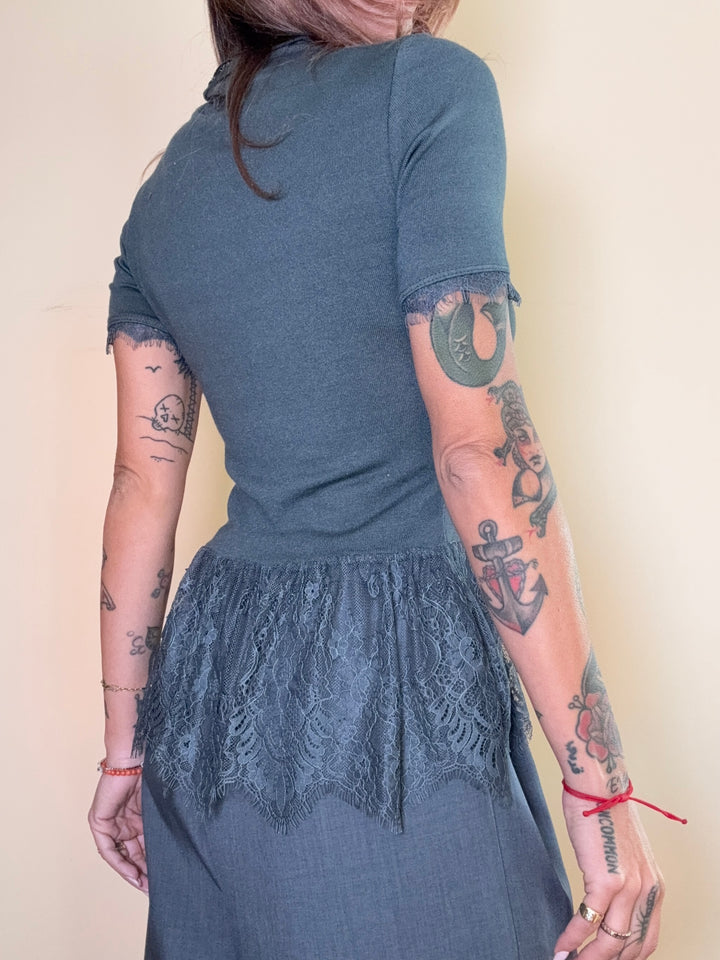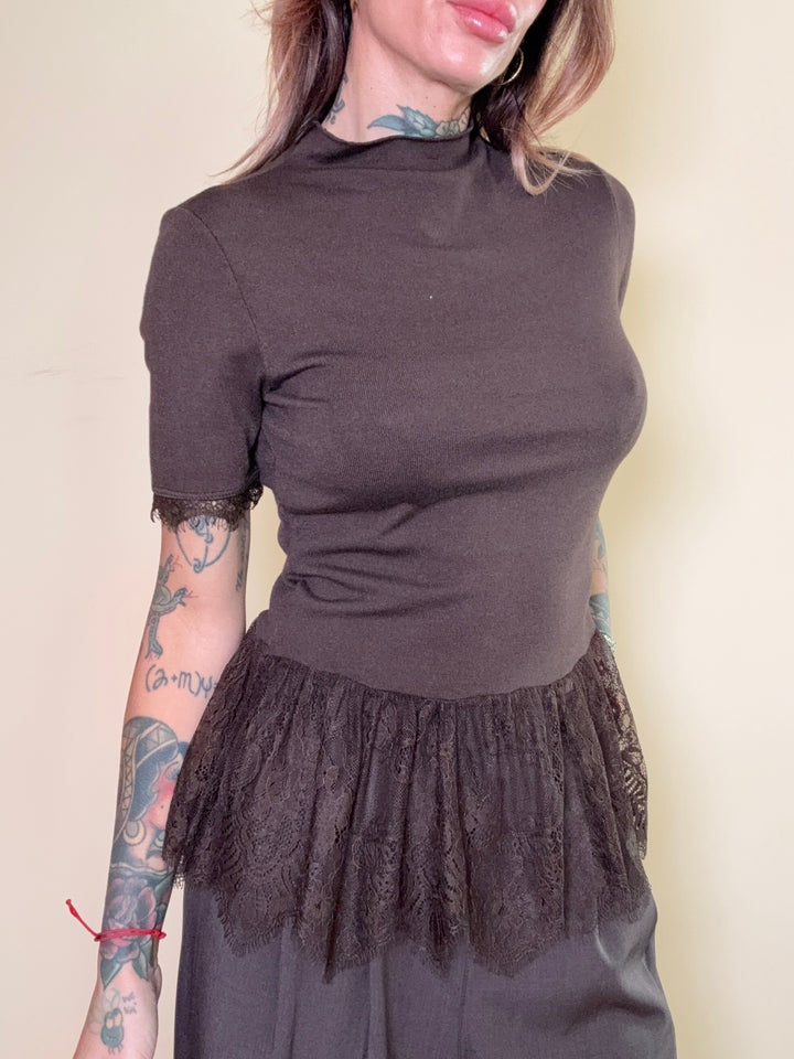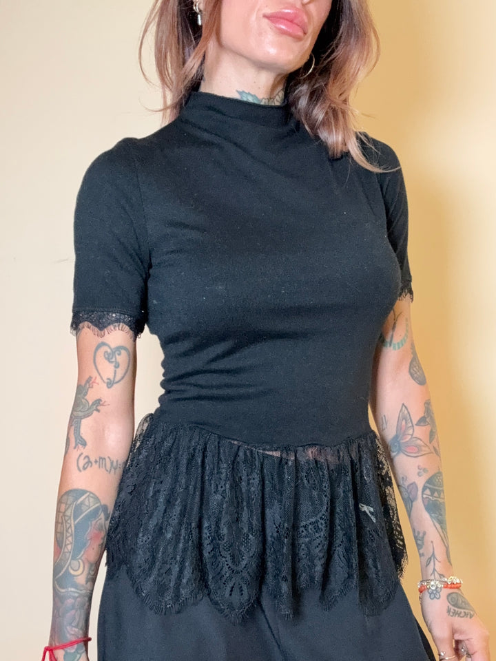 maglia manica corta stretch con pizzo. in taglia unica