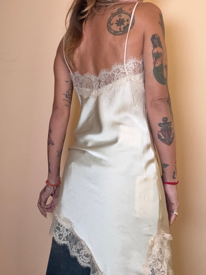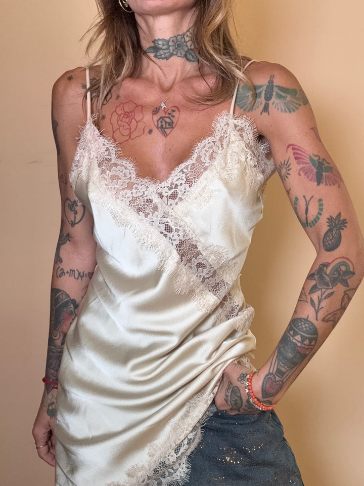 top/ abito in raso e pizzo. taglia unica