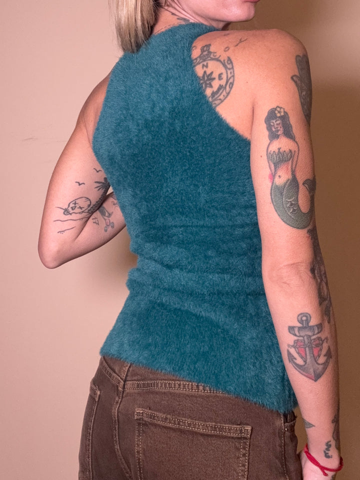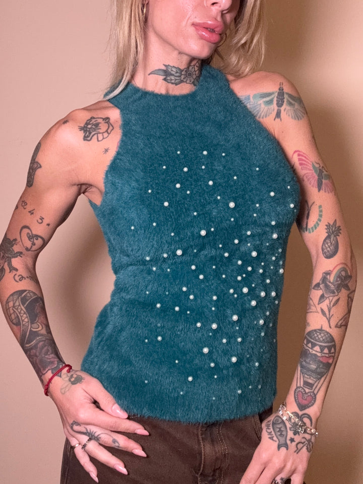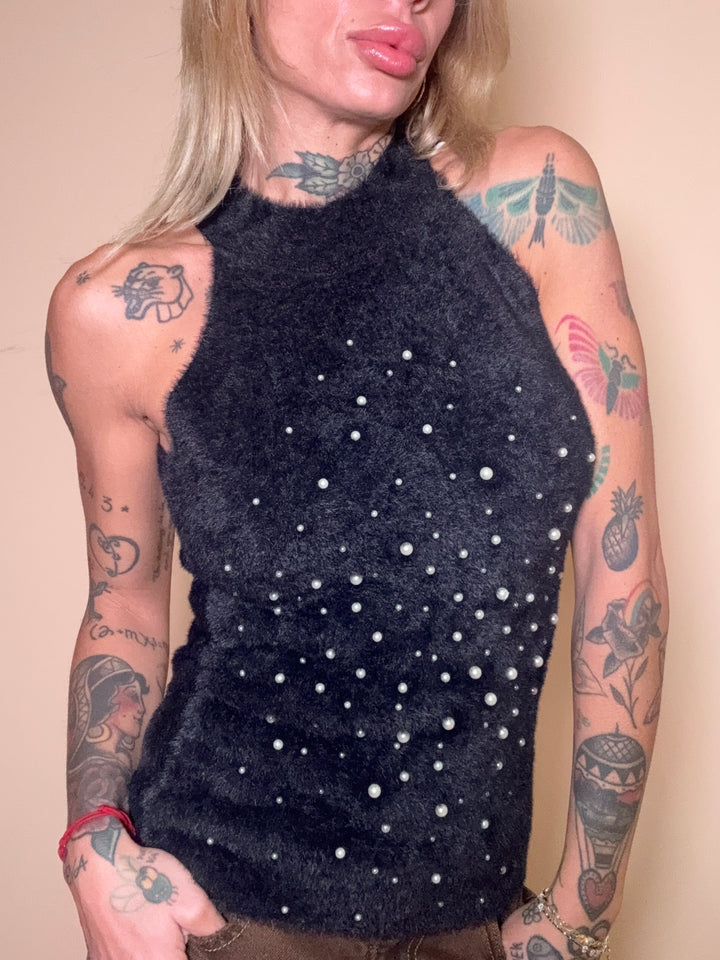 top in maglia elastica con perle sulla parte davanti. tg unica
